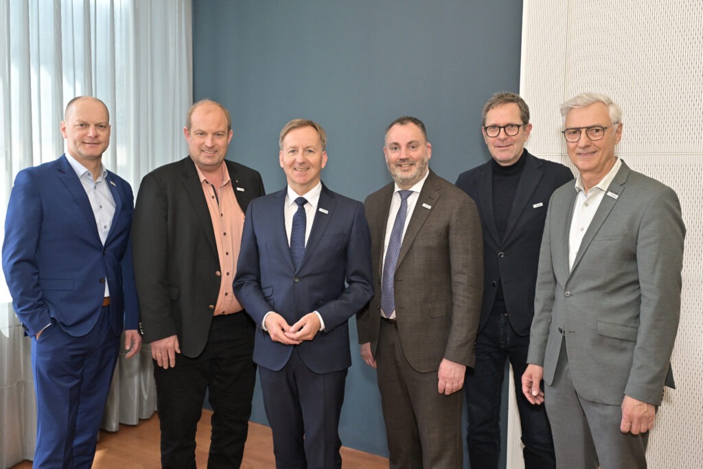 Das Präsidium des Bundesverbandes mit dem neuen Hauptgeschäftsführer Dr. Philipp Frank: Christian Benter, Ivo Fuhrmann, Dr. Philipp Frank, Präsident Guido Müller, Markus Heineke, Dietmar Ahle (v.l.n.r.)